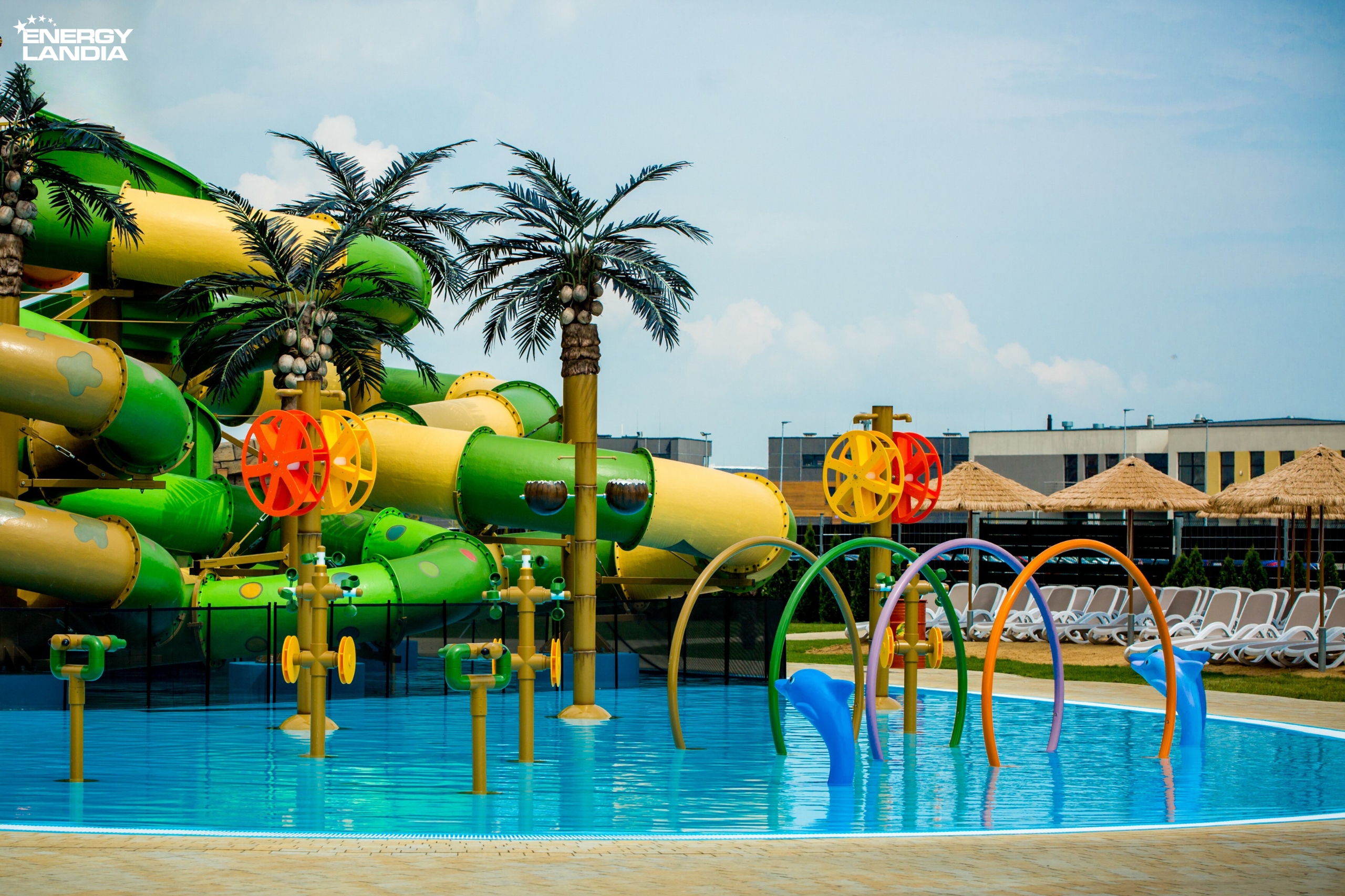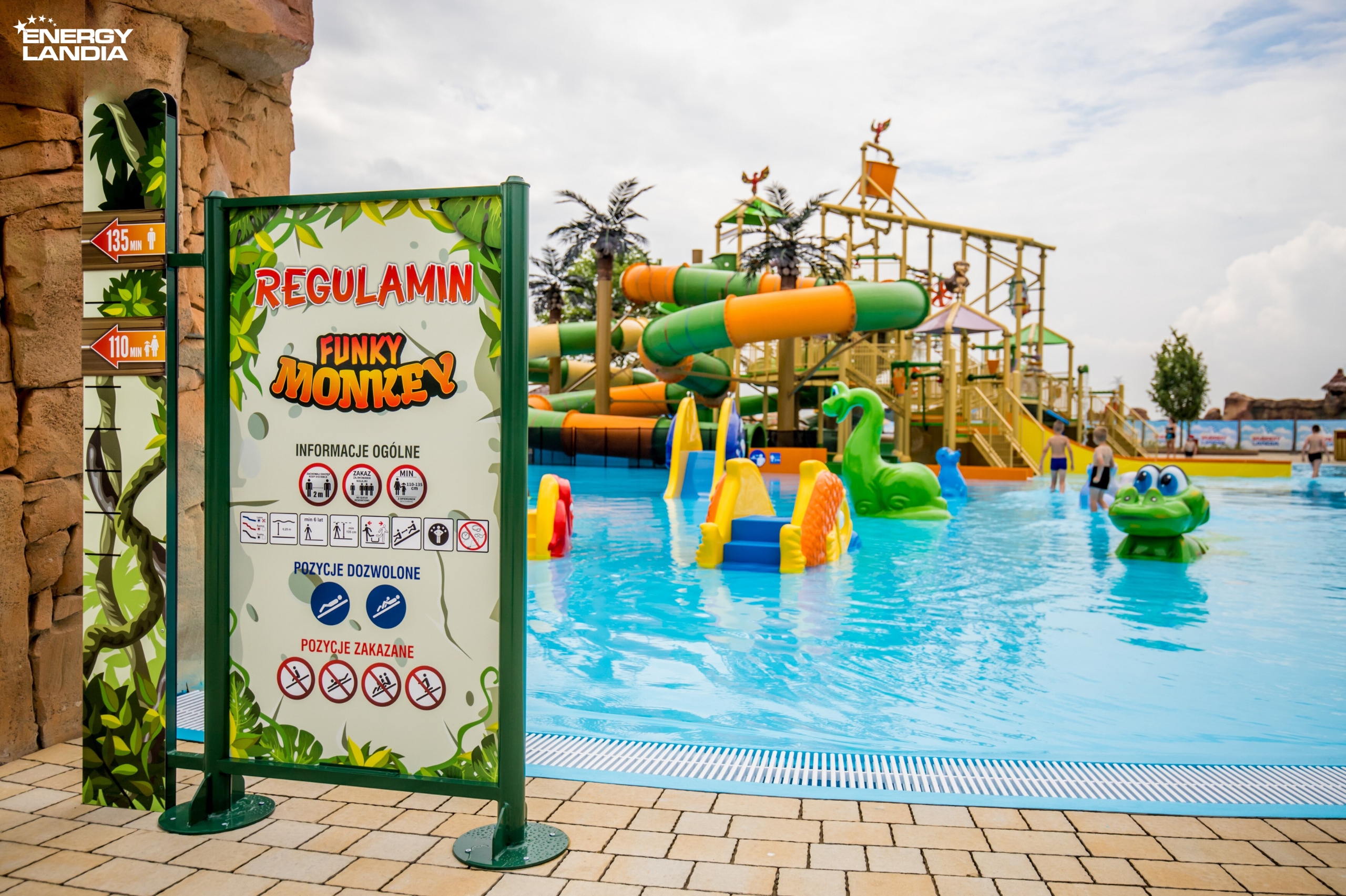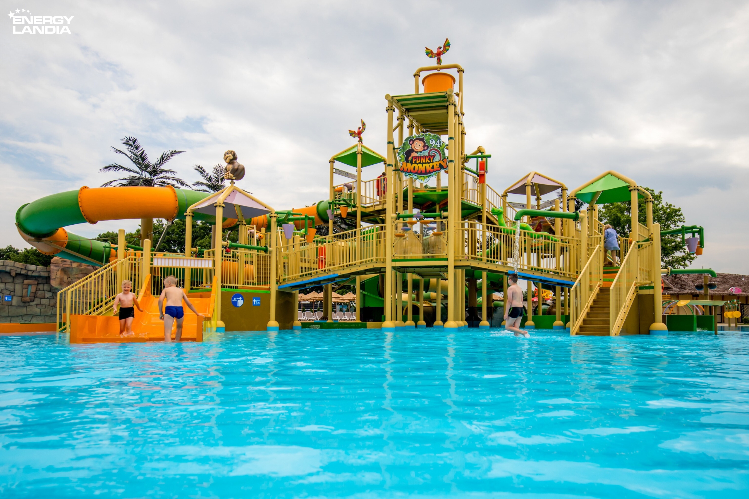 Nevyčerpaný zdroj nápadů na vydařenou zábavu najdete na tropickém hřišti /Tropikalny plac zabaw/ " Funky Monkey", nacházejícím se uprostřed celého komplexu. Na starší děti čekají výjimečné vodní skluzavky! ➡ Místo vybaveno 5 vodními skluzavkami a četnými stříkajícími atrakcemi - vodní děla, mlýnská kola, vylévající nádoby a velká i malá vědra. Hlavní, tématem hřiště je tropická džungle s mnohými palmami, figurkami zvířat (opic nebo papoušků). Hned vedle, dedikována nejmladším hostům berouc v úvahu menší a barevné stříkající proudem vody atrakce - Zóna vodní zábavy pro nejmladší /"Strefa wodnych zabaw dla maluszków"! Hloubka brouzdaliště poskytuje možnost svobodné zábavy pro mladší i starší děti. Bude zde možné si zastřílet z malých děl do vodou pohybovaných kokosů, i také se zabavit pod palmami s mlýnskými koly s přelévanými vědry.