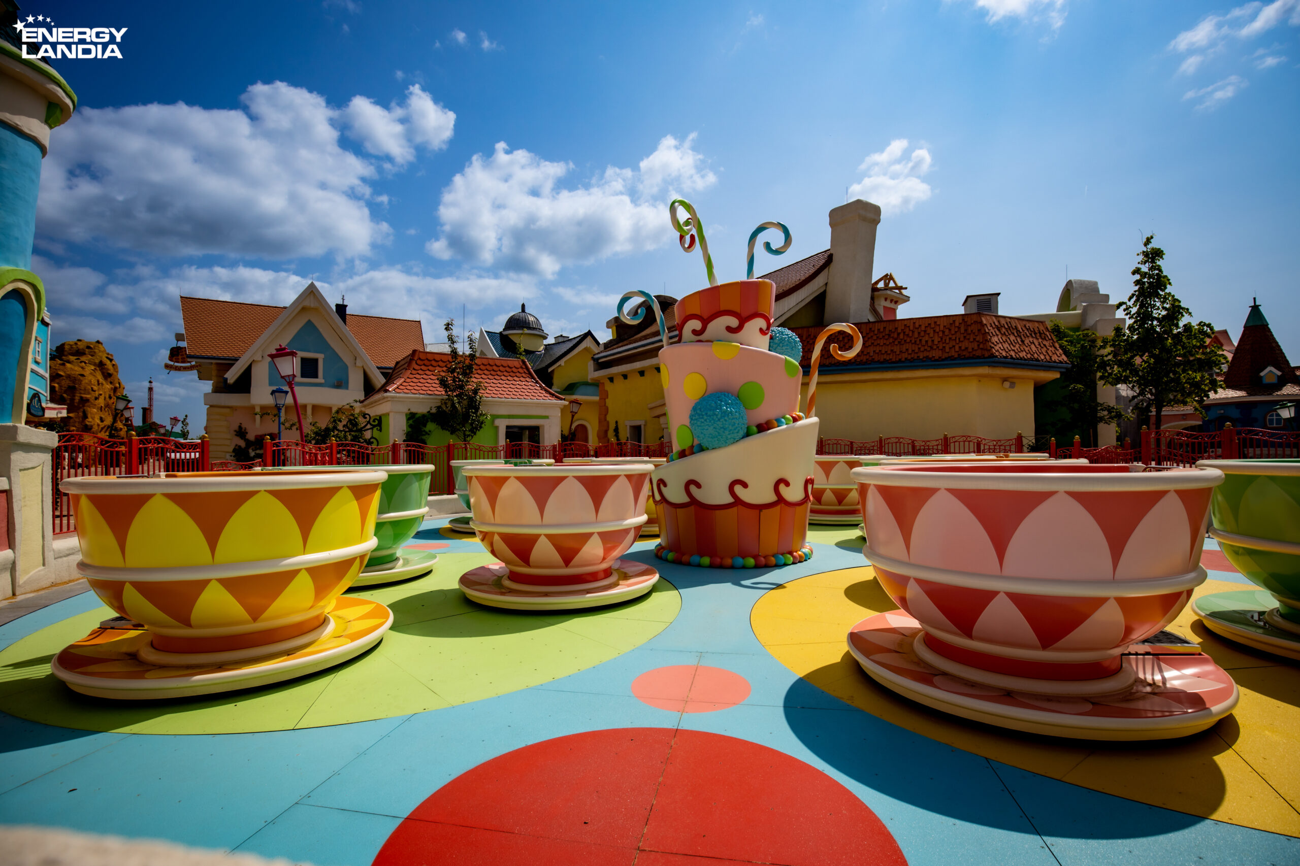 Світ закрутиться, це точно! Кожна чашка вміщатиме п'ять осіб! Транспортний засіб чашки матиме кермо, що дозволяє пасажирам обертатися, роблячи цю поїздку дійсно крутою! Це місце обов'язково варто відвідати на карті нової зони Енерголяндії: Солодка долина!